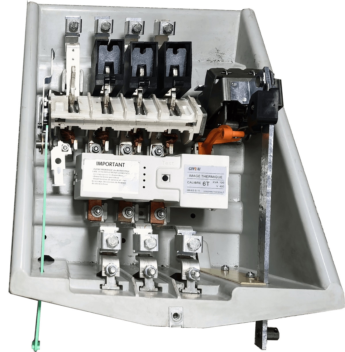 Ces appareils (4 pôles dont 3 protégés) sont à coupure dans l'air avec chambres à cloisons métalliques pour la coupure de l'arc.Disjoncteur ouvert, un contact établi une liaison électrique entre le neutre du transformateur et la masse du poste.